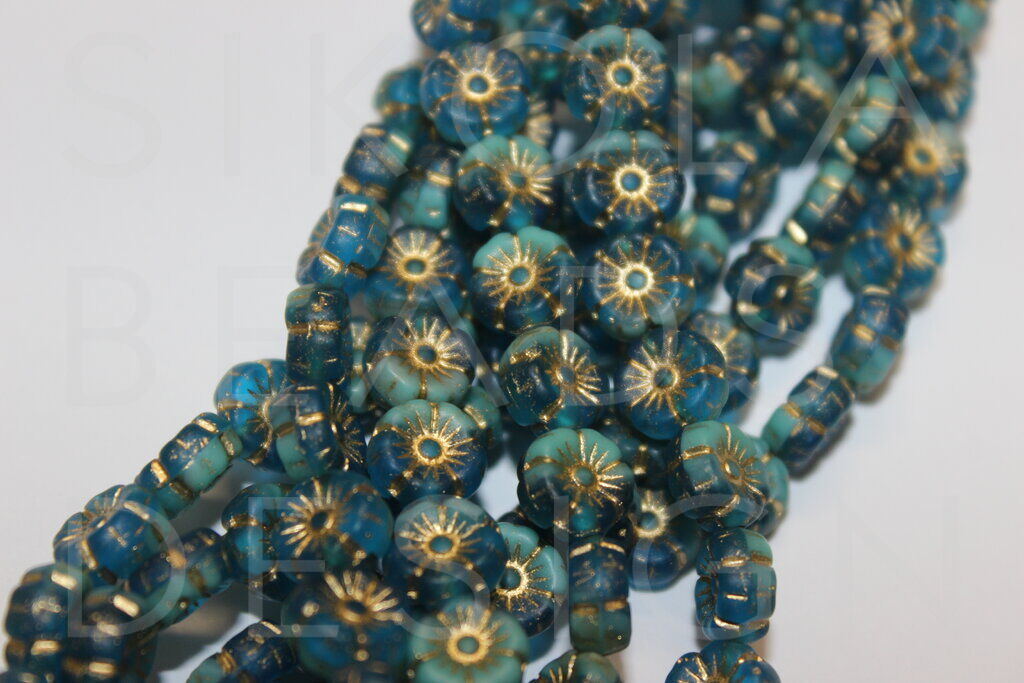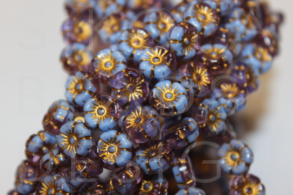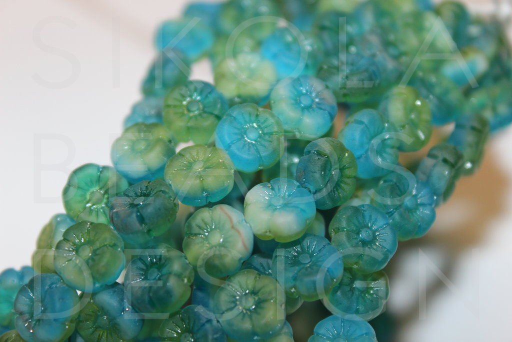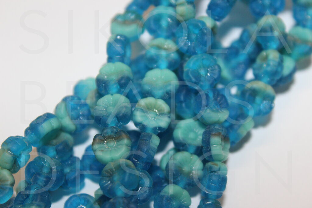 Glass beads made out of two or more glass rods. Air bubbles and cracks may occur.
